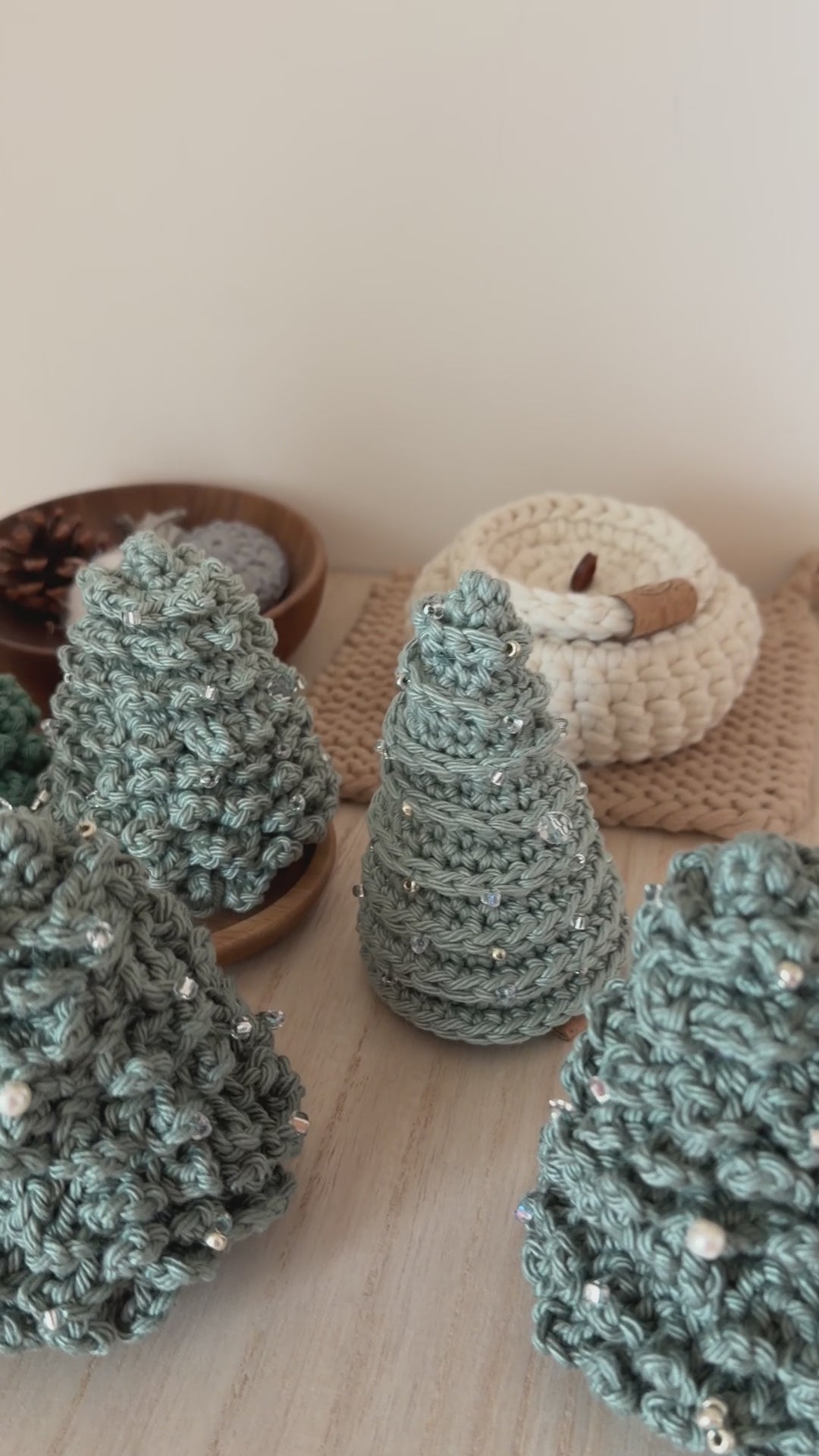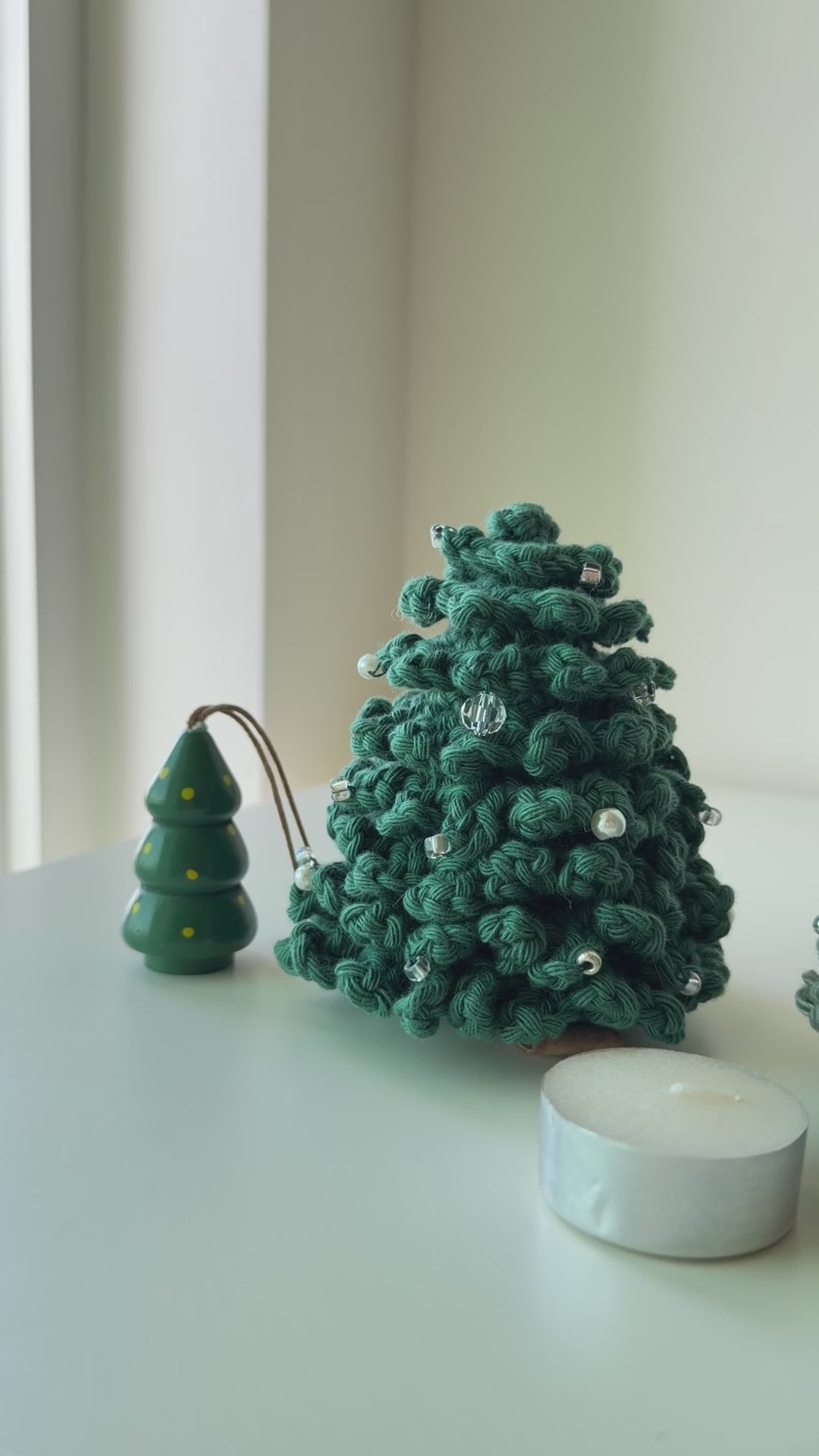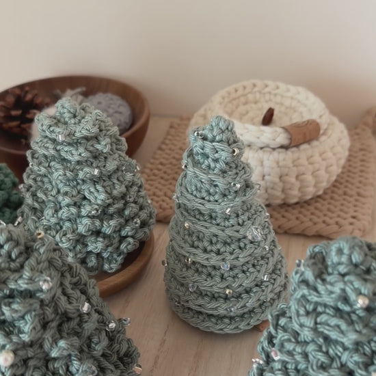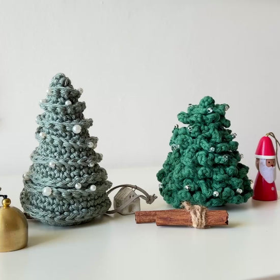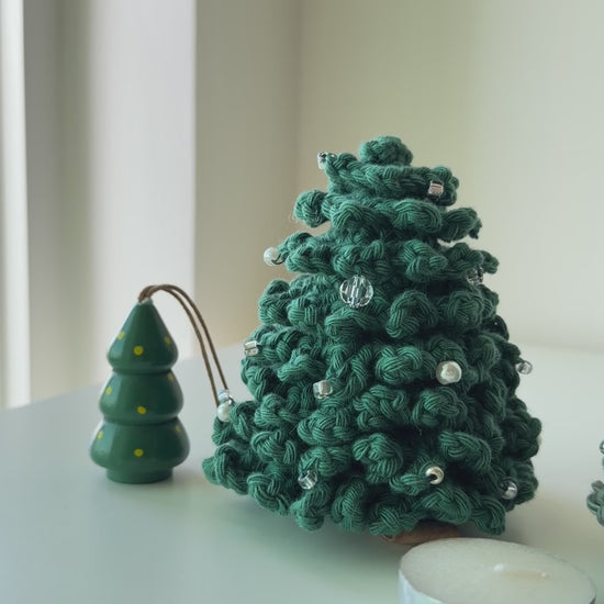 Our beloved tabletop Christmas trees are back after three years. Each piece is hand-crocheted and hand beaded with assorted glass beads and pearls, crafted with genuine care and attention. These palm-sized treasures add festive warmth for small spaces and eliminate the annual hassle of storing bulky trees. Durable and reusable for countless cosy Christmas gatherings to come, this is a limited collection we're thrilled to share with you again.
