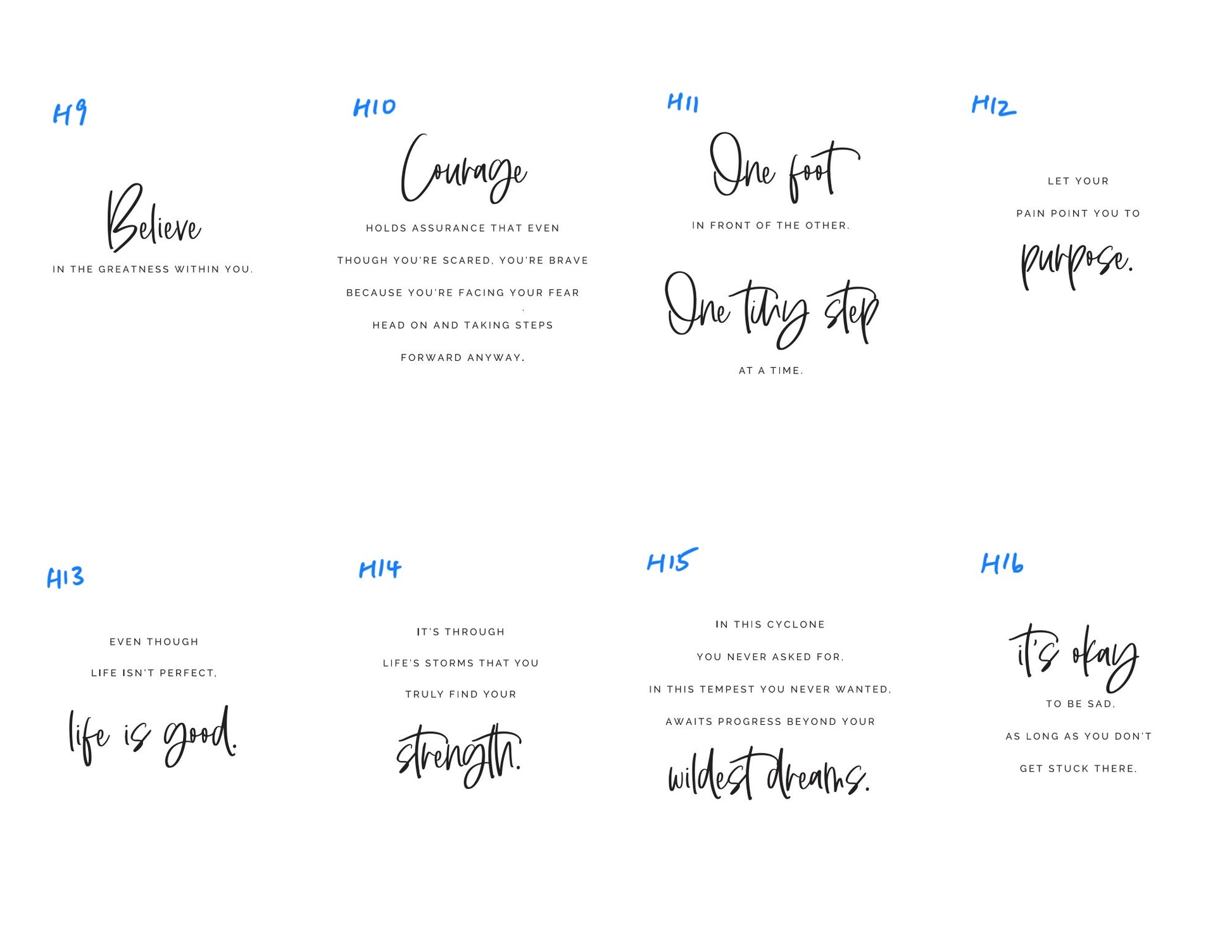 Add a little mindful reminder to your everyday routine with our Mindfulness Cards. Each card features an intentional affirmation to help you stay focused and present. Use as a bookmark (tucked in your journal) or notecard (pinned to your inspo wall) for a simple, yet powerful reminder to be grounded in the moment.